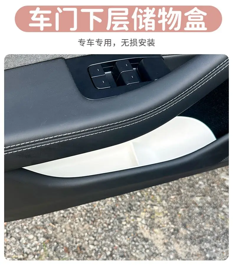 סט 4 קופסאות אחסון לידיות דלתות לרכב לטסלה מודל 3 היילנד – מגש ארגונית לפאנל הדלת ומשענת היד | אביזרים שימושיים לרכב