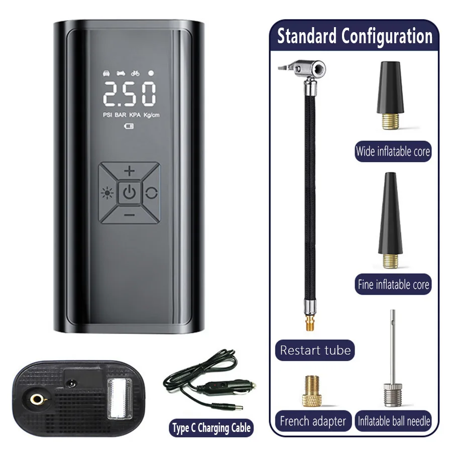 4. Built-in LED Light. 3 lighting modes (always bright, strobe, SOS), for the dark night of inflation, tire repair, check the car breakdown and emergencies.